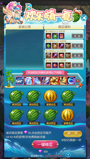 3."清凉西瓜"与"避暑金瓜"有开出极品大奖,"盛夏彩瓜"砸开必得极品奖励