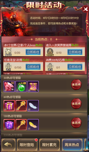 活动简介:完成指定条件,即可获得热点和丰厚奖励!