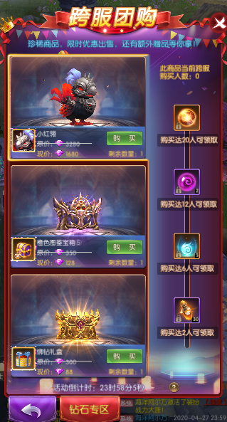 1.商品有对应额外奖励,参与购买对应商品且满足对应所需购买人数方可领取额外奖励;