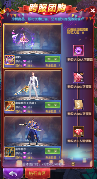 1.商品有对应额外奖励,参与购买对应商品且满足对应所需购买人数方可领取额外奖励;