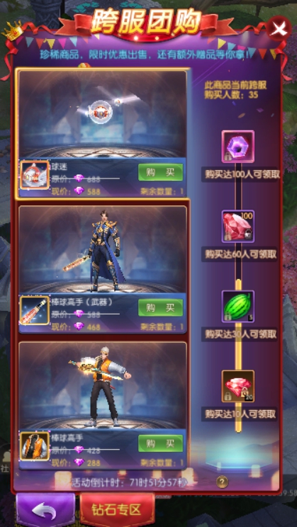 1.商品有对应额外奖励,参与购买对应商品且满足对应所需购买人数方可领取额外奖励;