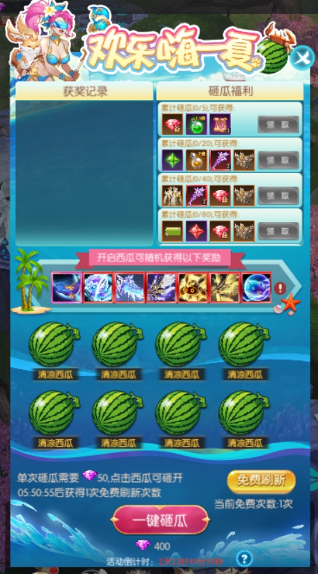 3."清凉西瓜"与"避暑金瓜"有开出极品大奖,"盛夏彩瓜"砸开必得极品奖励