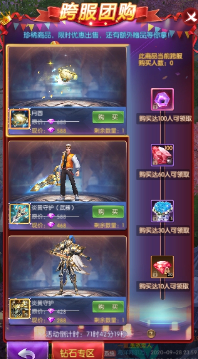 1.商品有对应额外奖励,参与购买对应商品且满足对应所需购买人数方可领取额外奖励;