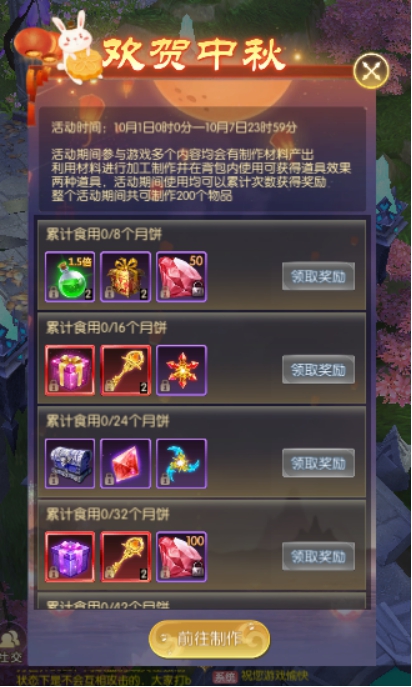 活动简介:活动期间参与游戏多个内容均会有制作材料产出,利用材料进行加工制作并在背包内使用可获得道具效果,无论何种道具,活动期间使用均可以累计次数获得下方奖励