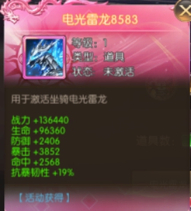 等级自适应坐骑 | 坐骑-幽兰幻兽 | 坐骑-远古魔蝎 | 坐骑-踏雪仙鹿 | 抖金神犬 | 怒焰血兽 | 傲慢行者 |