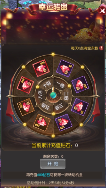 活动简介:每满足充值金额可获得1次转盘次数;次数获得有每日上限,达到上限后不再获得;