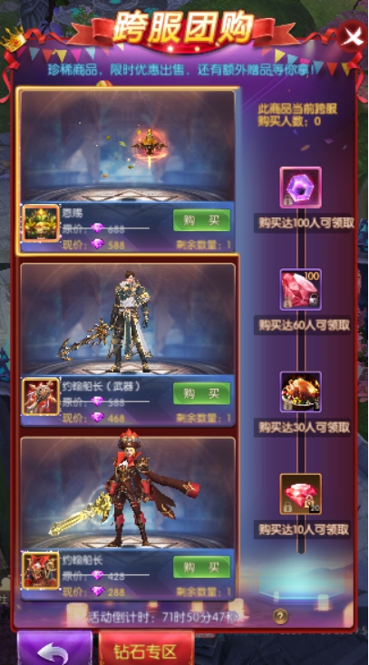 1.商品有对应额外奖励,参与购买对应商品且满足对应所需购买人数方可领取额外奖励;