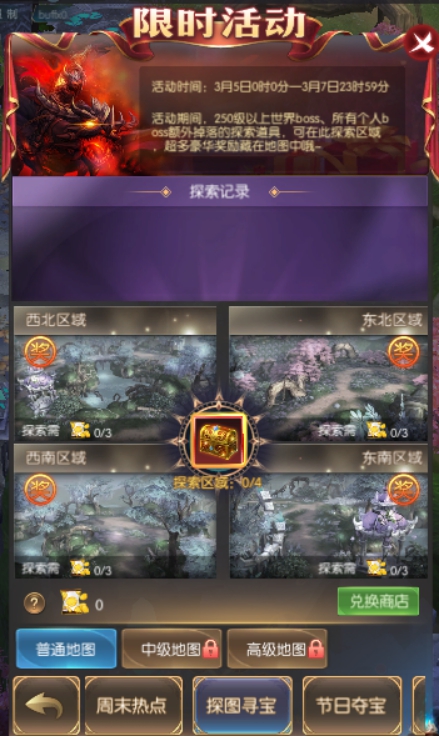 活动简介:活动期间,250级以上世界boss、所有个人boss额外掉落探索道具,可在同期的探图寻宝活动中探索区域获得奖励。