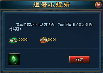 如果成功带回物资箱会增加本帮的资金资源,并且自己能获得可观的额外奖励哦!!