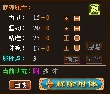 2. 附体状态同样会使武魂的战意值逐步减少,当武魂战意值为0时,将强制转为休息状态。