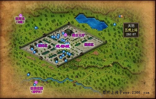 作为蜀国英雄传奇中的一员,当然得先了解自家环境。一看环境,还是一个字,囧!历史上的关羽是守荆州一带的,现在却把关羽放到东北的方向守长安。刘备、诸葛亮居主城大厅,赵云做着御前侍卫,张飞被派作了城市副本看守员,压力啊!不知是否游戏开发人也不满关羽的大意失荆州,把他放到东北防守魏国好了,但那片也就十级以下的任务和怪,十级以下一直围着关羽转,看着五虎上落得如此下场,囧啊!
