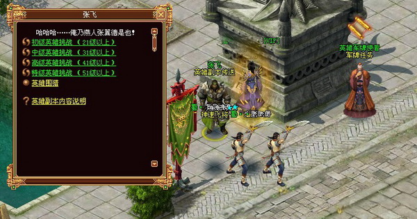 想要进入英雄副本很简单,在你主线任务的时候就会会有提示。也就是只要级别达到要求就可以在主城npc那里可以进入。整个英雄副本总共可以分为四个等级,从初级一直到特级,也就是说你可以从21级一直打到五十多级。每个玩家每天可以进入副本五次,当然包括副本挑战书的次数在内,目前还没听说谁会没有英雄挑战书的,那东西平常任务或打怪就会掉,当然也可以随便在各地摊上买到。