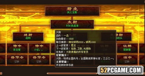 当然有在野的,也就会有王军!军团不仅是玩家展现身手的舞台,而更是一个军团崛起的重要机会。在由玩家担任国家君主的情况下,也即是军团长,君主拥国家各大部门的节制权利,主要团内人员功勋达到要求,就可以将其提升为国家的将相位等。以此往下推,军团与国家主要核心其实有着很大的重叠性,而掌握国家体系也可以为军团实力的扩充提供强有力的支持。两者相互相成,所以在野军团想要撼动国家政权必须要有足够的积攒!
