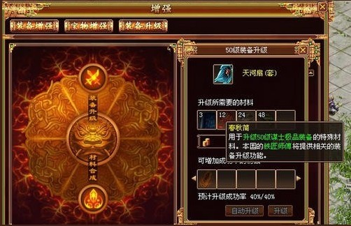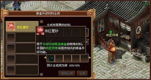 全新装备升级也是有4399的失败4399的,不过如果失败的话会消失升级材料和升级所需的银两,其它的倒不会有损失。如果想要提高成功率,可以加入装备升级符。还有就是装备升级中的赤红星砂在声望商店是无法直接购买到,需要通过声望商城的其他材料合成来获得,合成有4399的失败率,可以使用离石溶液增加成功率。