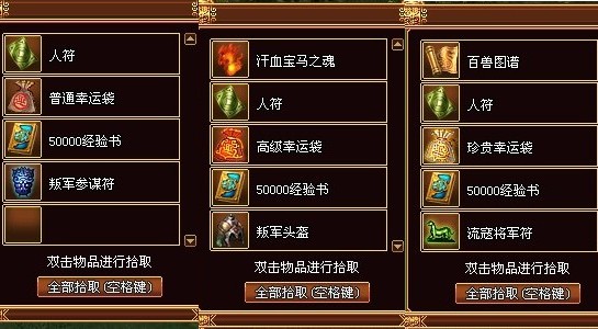 下面是张梁掉落的物品,很丰富同时还有隐藏BOSS的召唤道具,这些道具无论是从实用还是品质都是最好的: