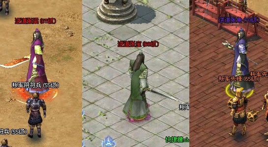 接下来是叛军大营。叛军大营各种怪都有,白名的叛军阴符兵、叛军信徒;蓝名的叛军精锐兵;黄名的叛军先锋;以及三个紫色名字的BOSS逆道张梁、逆道张宝和逆道张角。其中白色、蓝色和黄色名字的小怪会掉落强化石,而BOSS人参则为大家提供了截图,让大家亲眼看下BOSS掉落的东西。