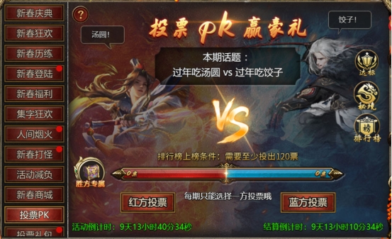 【活动内容】:活动期间,可选择阵营投票,投票上榜可获得丰厚奖励!