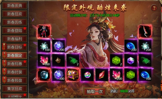 【活动内容】:活动期间,可使用灵符购买限定新春称号、幻武、时装礼包!