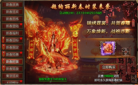 【活动内容】:活动期间,超绚丽新春时装来袭,使用灵符可购买永久新春时装!