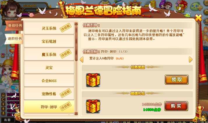 冒险指南新增进阶任务,进阶任务中的进阶礼包无时间限制,可随时购买,仅可购买一次。
