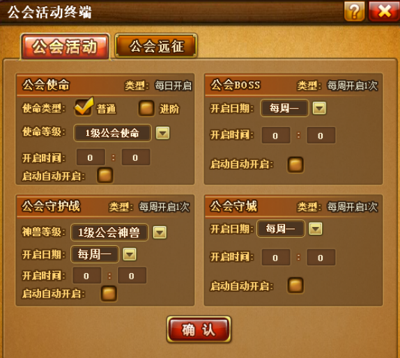 会守护战/公会守城),并可自由设定相关公会活动的开启时间;