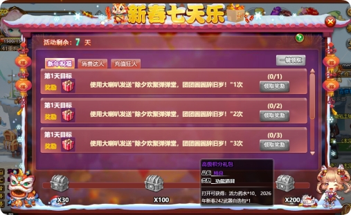 活动规则:活动期间内登录游戏即可领取守岁礼包一份!