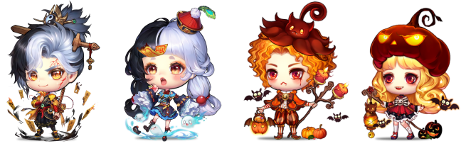 赛博大道长/萌僵小尸妹(商城)、狂欢万圣夜/暗夜洛丽塔(商城)、深海之王/深海之女(充值)、不给糖就捣蛋(登陆领取)