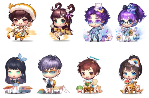 1、服饰展示(按顺序排列): 灯夕华服/元夜霓裳、蓝莓甜梦·男/蓝莓甜梦·女、春日假期/盛夏祷歌、清凉夏日·男/清凉夏日·女;