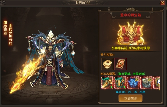 4. 攻打世界BOSS伤害前十的玩家,还可获得‘董卓的藏宝箱’,有机会开出极品道具