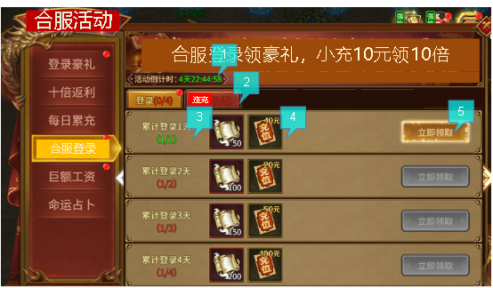 1) 合服后,个人活跃满足一定条件后,可领取奖励