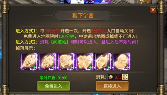 2. 每360分钟开启五分钟入口,满足条件后可免费进入场景,限制停留120分钟。