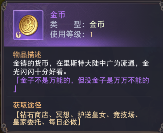 获取途径:钻石商店、冥想、护送皇女、竞技场、每日必做。