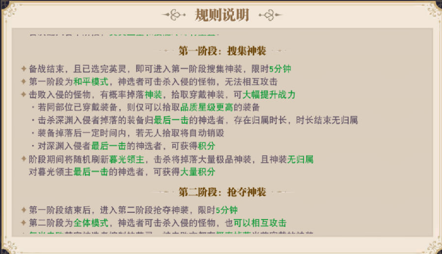 随机刷新“暮光主宰”,击败可得极品神装与高额积分。