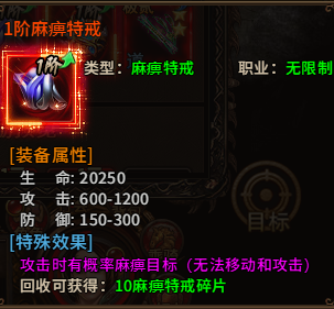 可获得10个麻痹特戒碎片。