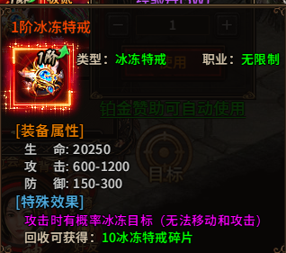 可获得10个冰冻特戒碎片。