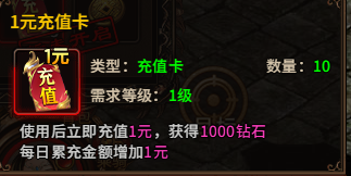 使用后立即充值1元,获得1000钻石;
