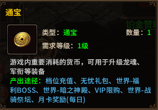 通宝是后期成长的关键货币,积累越多,战力提升越快!