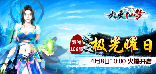 4399《九天仙梦》双线一百零六服“4399极光曜日”将于2012年4月8日10:00震撼开启!丰富的开服游戏活动,精彩的游戏内容,都在等待您的参与!您还在等什么?赶快呼朋唤友加入我们吧!