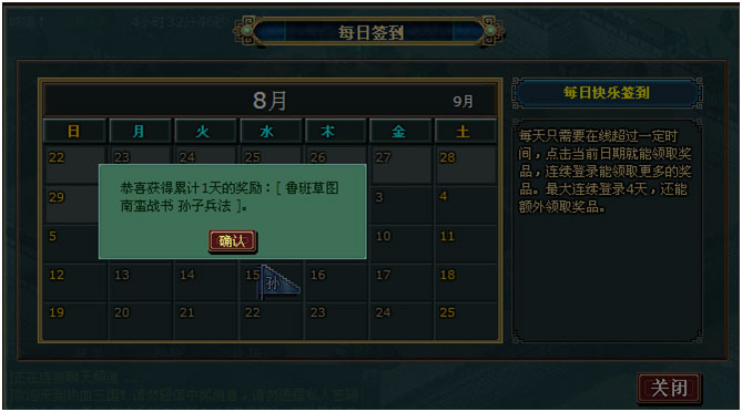 除了之前每日签到的奖励外,玩家可在每日签到中免费获得"孙子兵法"一本。