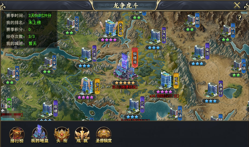 一、龙争虎斗为跨服活动,每天11:00-23:00点开放,其他时间无法攻城和掠夺。