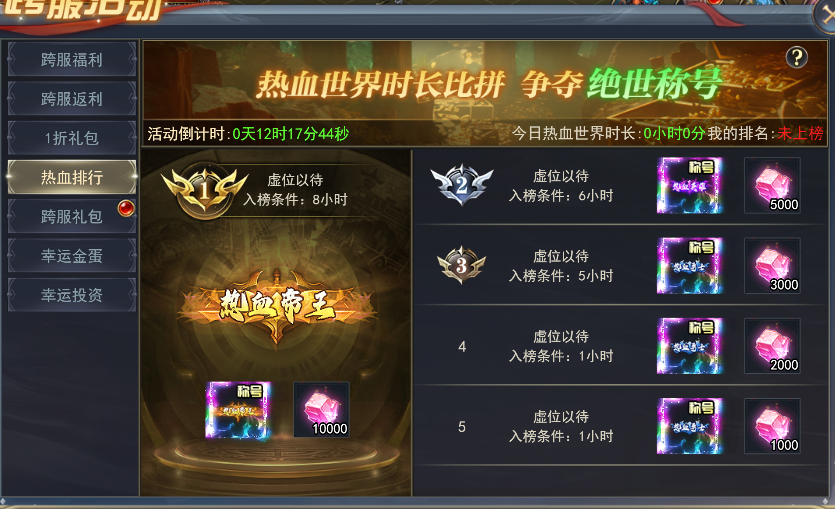 1.每日在热血世界地图游玩时间满足条件即可上榜。