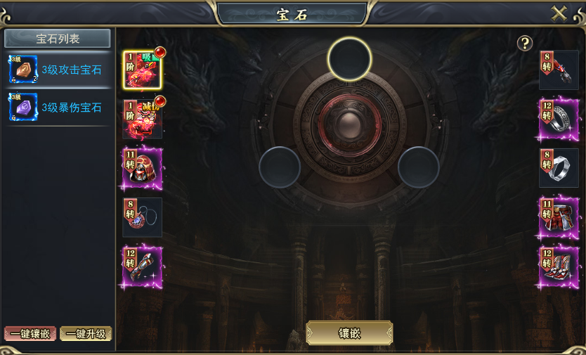 1.镶嵌宝石需要先开启宝石孔位,开孔石随转生等级解锁