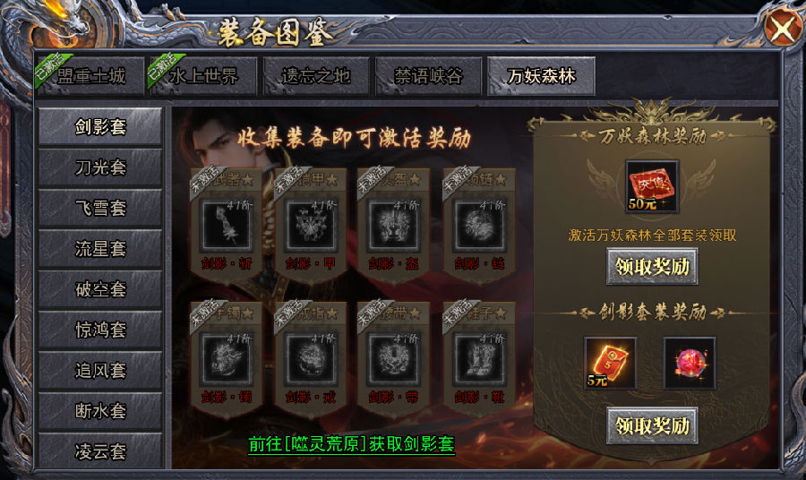 当你打怪掉落并收集齐对应的套装部件(如武器、衣服、头盔、项链等),即可在“装备图鉴”界面激活该套装。激活不仅能获得套装专属奖励,当收集齐整个大陆的全部套装时,更能解锁震撼全服的终极大陆大奖!