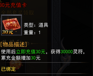 收集指定套装,直接领取30元、50元真实充值卡!使用后不仅能获得数万灵符,更能实打实地增加你的累充金额,不花一分钱解锁高级累充奖励!