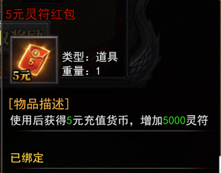 在收集的过程中,1元、2元、3元、4元、5元面额的灵符红包将源源不断地落入你的背包!每一个红包都能开出成千上万的灵符,让你在商城里肆意扫货,强化装备毫无压力!