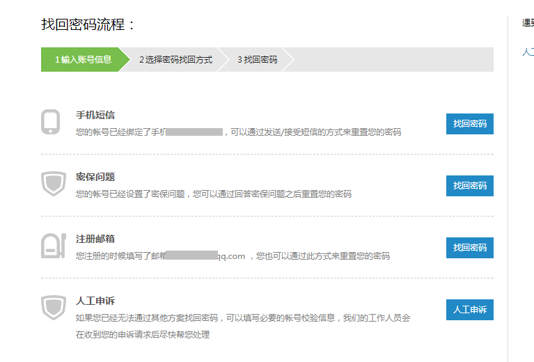 描述:账号未绑定密保资料,人工申诉找回密码