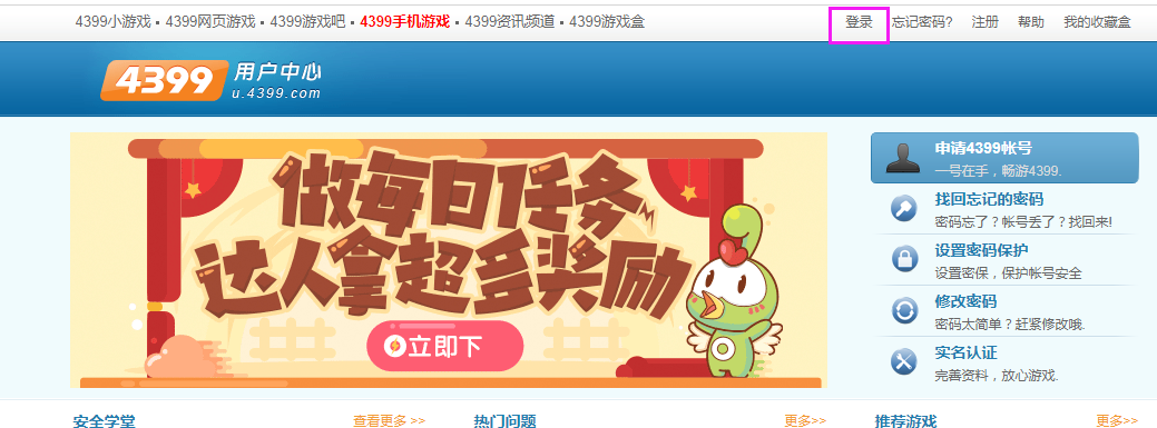 一、进入http://u.4399.com/,点击右上角登录