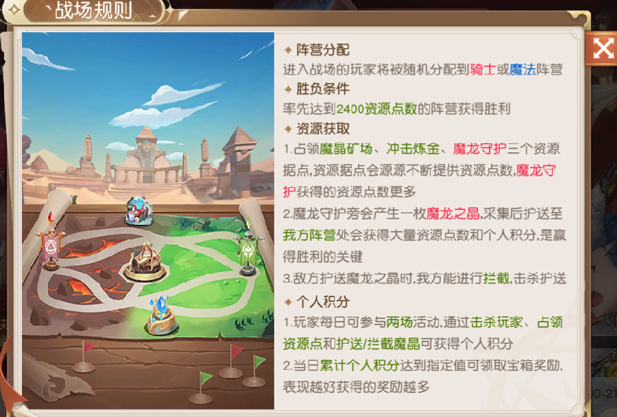 击杀玩家、占领资源点、护送或拦截魔龙之晶均可获得积分。
