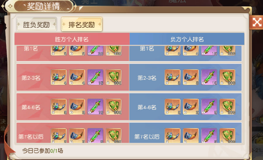 | 奖励类型 | 胜方奖励 | 败方奖励 |