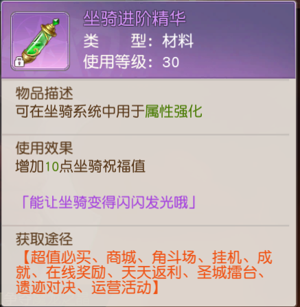 这是提升坐骑成长速度的基础材料,建议多多积累。